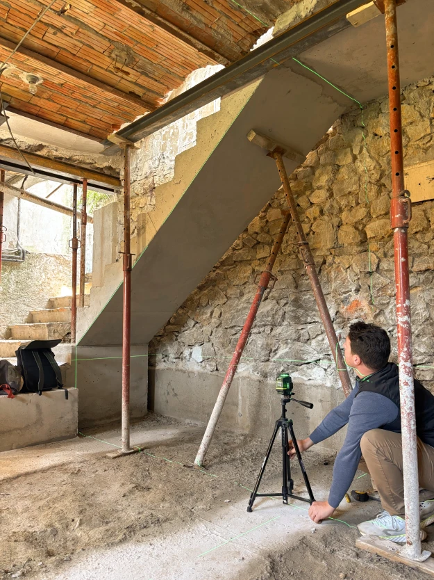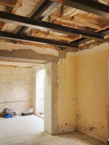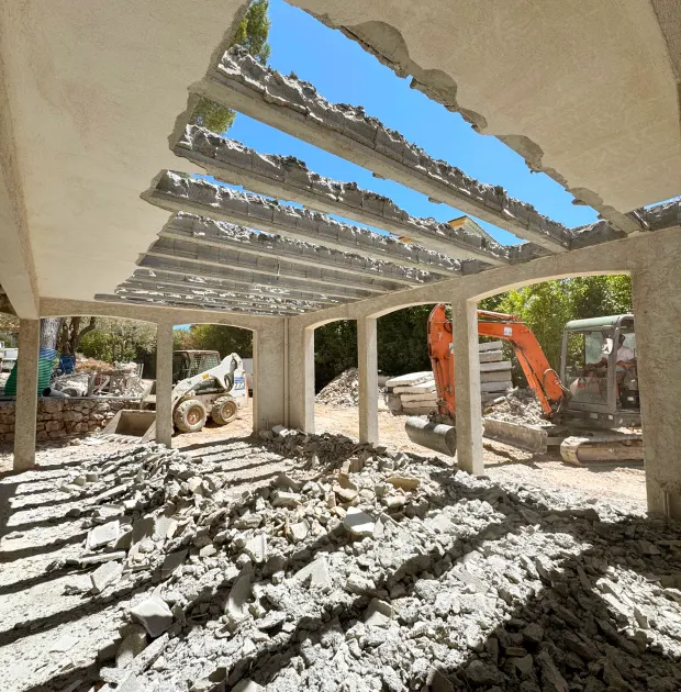 Nos équipes interviennent sur les rénovations lourdes nécessitant des interventions structurelles : curage complet, démolition intérieure, reprise en sous-œuvre, renforcement de planchers ou création de trémies.